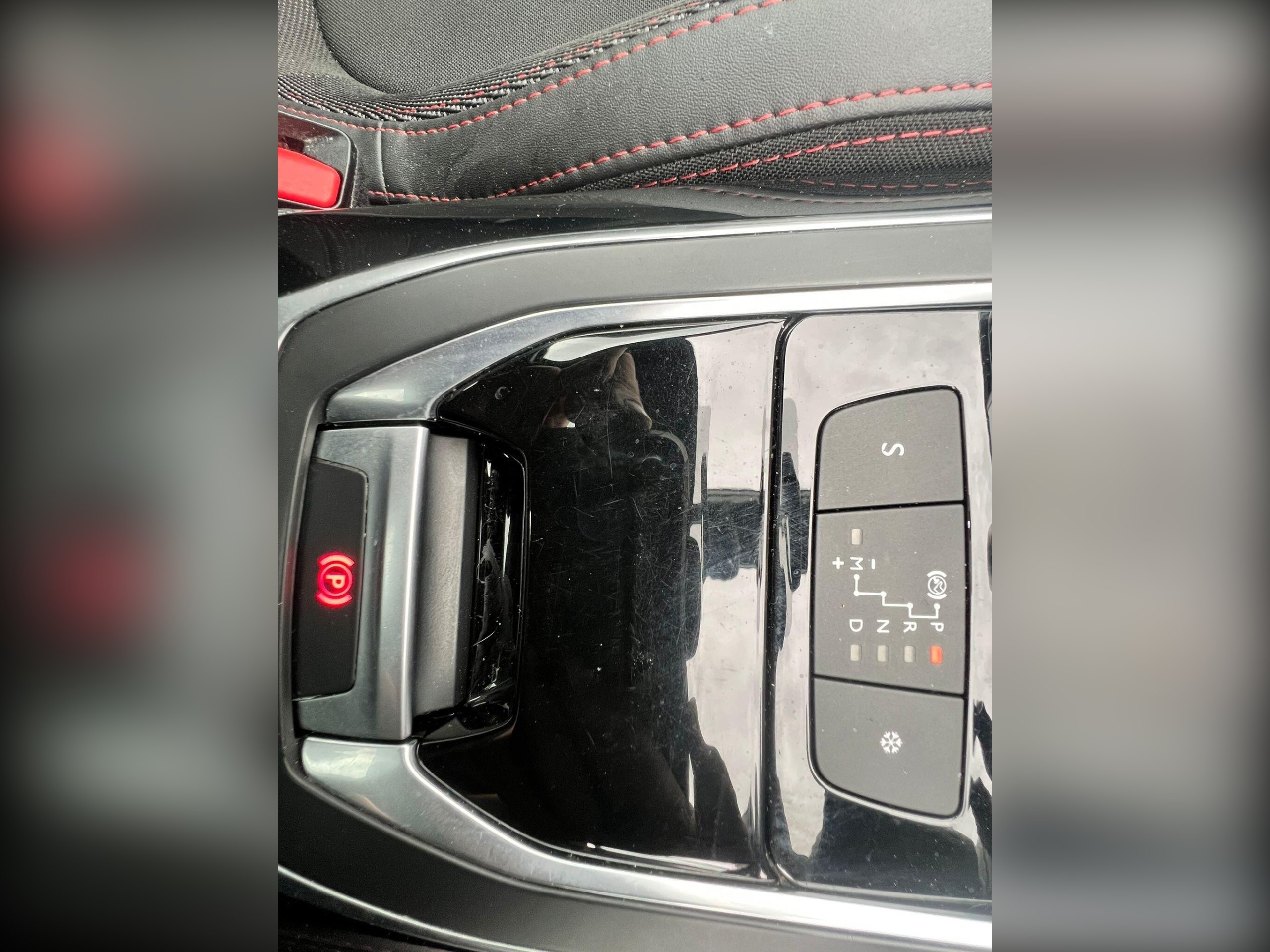 - Front Armrest and Gear Lever Gaiter with Red Contrast Stitching